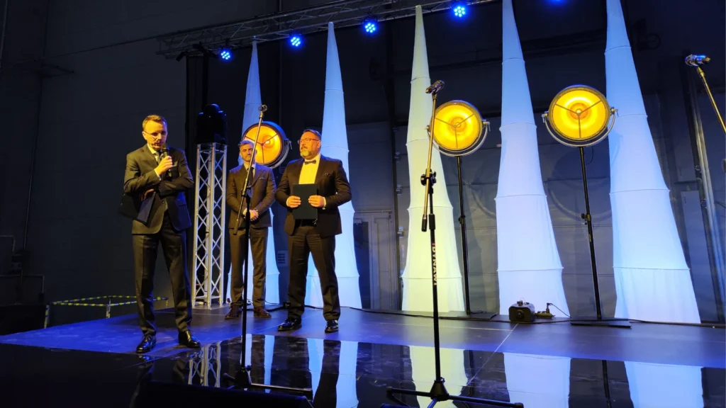 W tym przypadku przygotowaliśmy galę dla kontrahentów w nowo wybudowanej hali produkcyjnej firmy Elektromontaż Lublin. Kluczowym elementem było wykorzystanie przestrzeni przemysłowej w taki sposób, aby stworzyć spójne i efektowne wydarzenie, przy jednoczesnym zachowaniu bezpieczeństwa i minimalnym wpływie na proces produkcyjny.